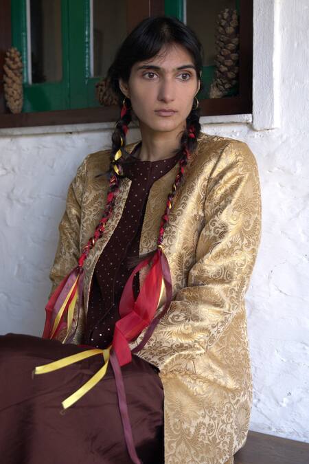 Brown Koti Pashmina Sharara Chanderi Round Jacket And Set