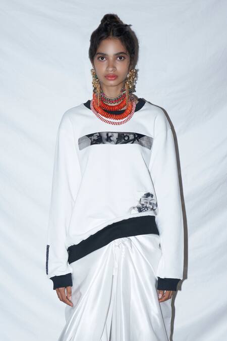 White Cotton Jersey Patchwork Sweatshirt