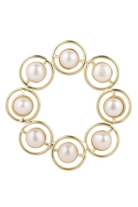Buy_Anaash_Gold Plated Pearl And Metal Circular Brooch_at_Aza_Fashions