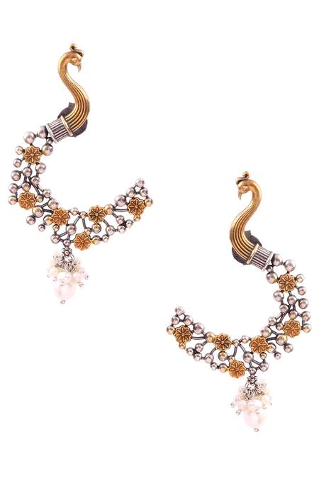 Intricate peacock design, Curved shape with carvings, Pearl drop embellishments