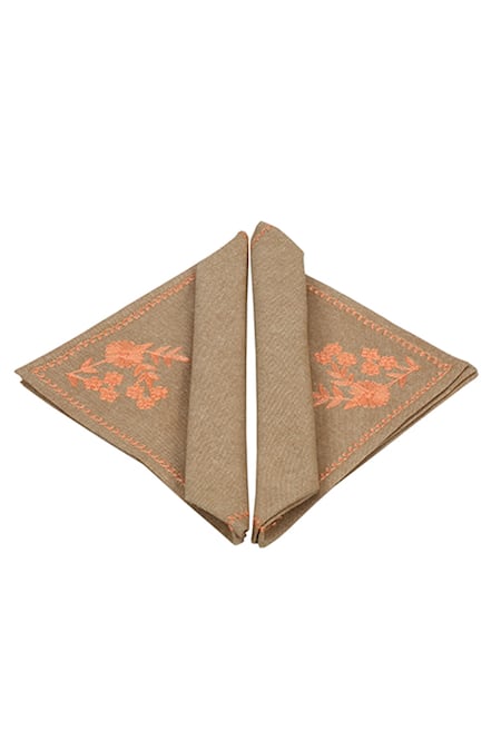 Dull gold napkin with embroidered floral embroidered motifs comes with five napkins. The design inspired by Japanese symbolism of nature.