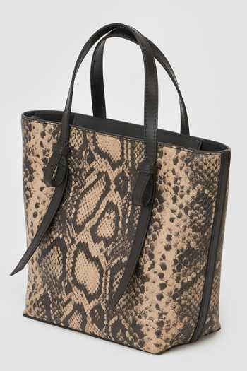 Black Hallie Reptile Print Tote Bag
