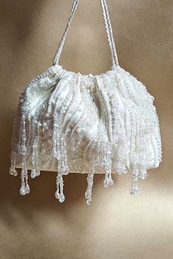 White Embroidery, Beads Crystal Pearl Embellished Potli