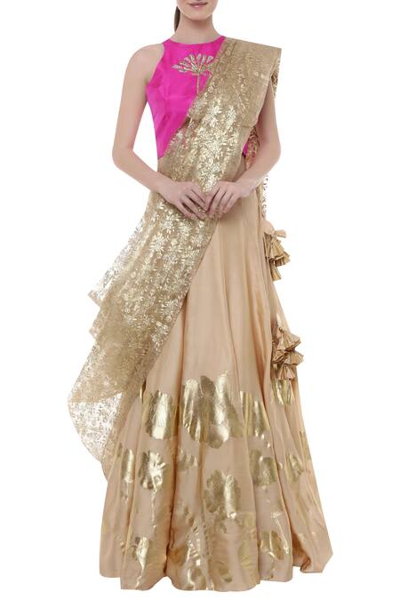 Gold Organza Printed Lehenga Set
