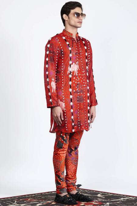 Orange Stone Crepe Printed Pants