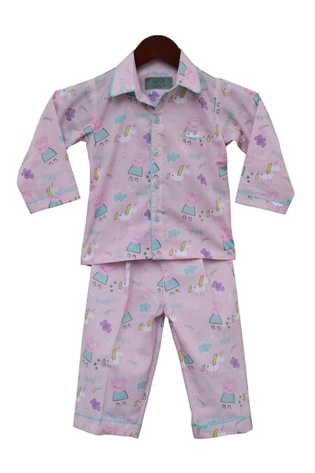 Lilac shirt with all over unicorn & pig print motif. Comes with payjama.