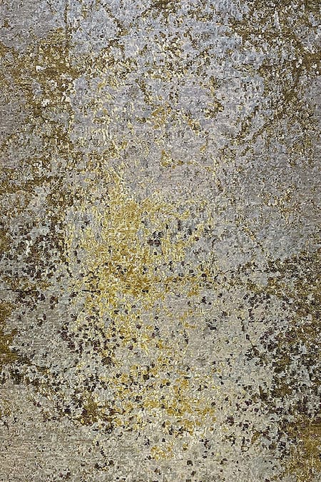 Light grey, gold & green rectangular-shaped handcrafted carpet with hand knotted technique & cut pile finish with embossed pattern.