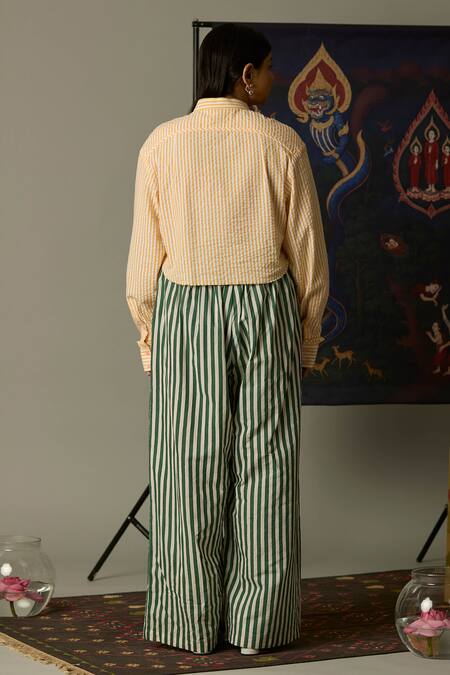 Yellow and white striped shirt made from 100% cotton