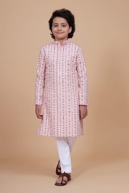 Shop_Raghavendra Rathore Blue_Pink Cotton Embroidery Printed Kurta _at_Aza_Fashions