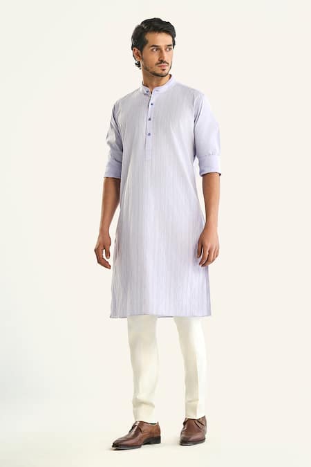 Blue Cotton Embroidery The Pastel Double Needle Kurta