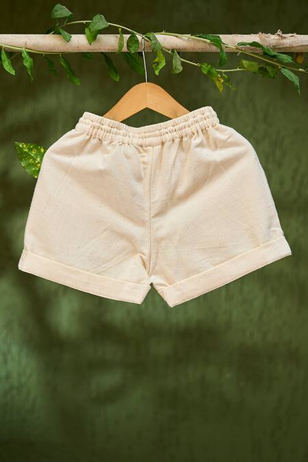 Cream 100% Soft And Breathable Handwoven Cotton Raindrops Keep Fallin Shorts