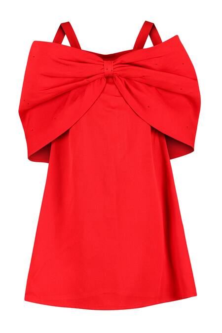 Red Crepe Stones A-line Bow Dress