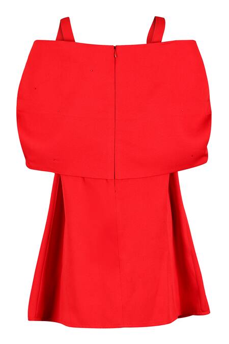 Red A-line dress featuring a sweetheart neckline and cold shoulder sleeves