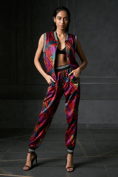 Buy_Redefine_Pink Mashru Geometric Front Open Zing Reversible Bomber Jacket_Online_at_Aza_Fashions