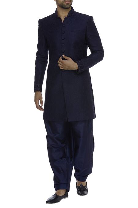 Blue Resham Embroidered Sherwani With Pyjama