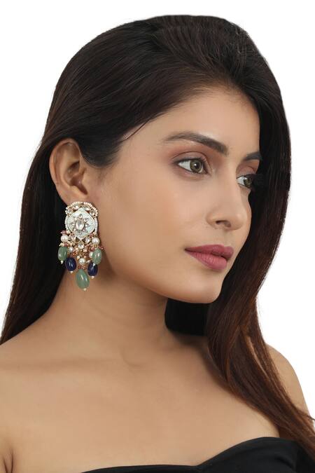 Dangle earrings with meenakari work