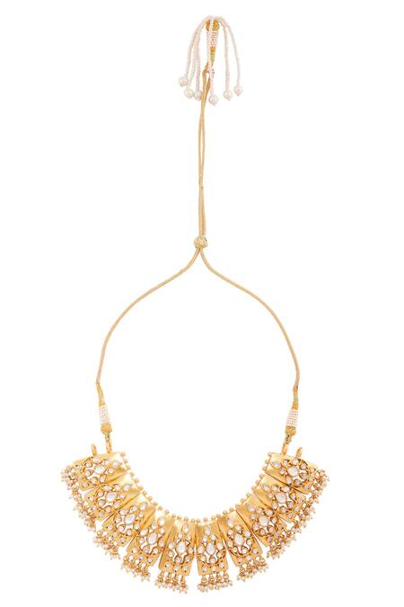 Motifs inspired by the rich botanicals of India, this gold-plated silver necklace is embellished with crystals and pearls