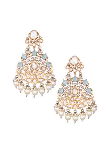 Aqua Stones, Pearls Embellished Dangler Earrings
