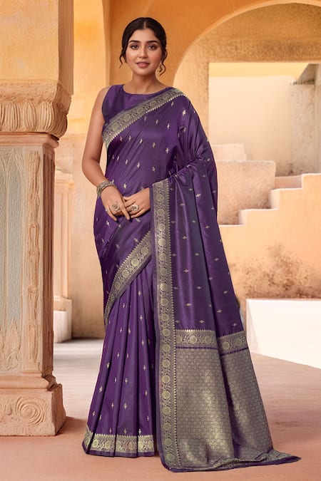 Buy_Naintara Bajaj_Purple Brocade, Silk Zari Boat Neck Floret Woven Saree With Sleeveless Blouse