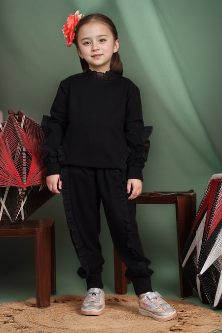 Black Cotton Ruffles Frilled Top And Jogger Set