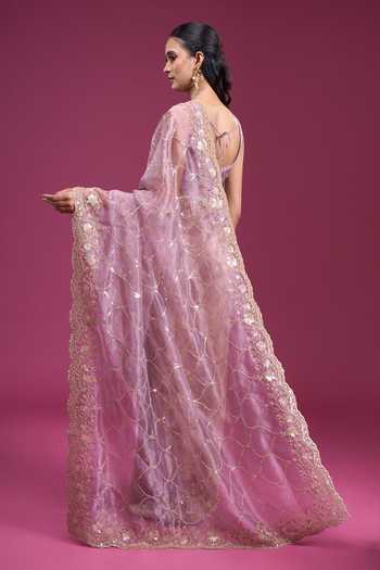 Onion purple saree with jaal pattern and handwork embroidery. Includes a padded blouse.