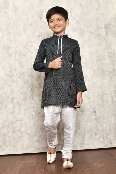 Shop_Petite Pomme_Black Jacquard, Cotton Embroidery Geometric Pattern Kurta Set _Online_at_Aza_Fashions