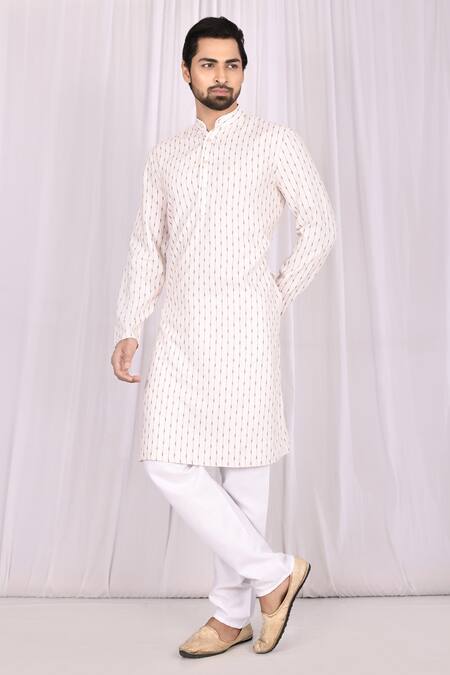 Off- white cotton kurta in floral print. Paired with solid pant.