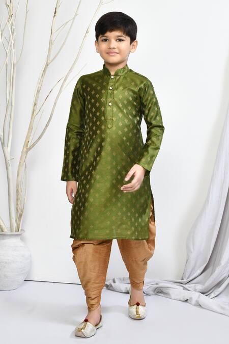 Green Brocade, Silk Embroidery Woven Floral Motif Kurta Patiala Pant Set