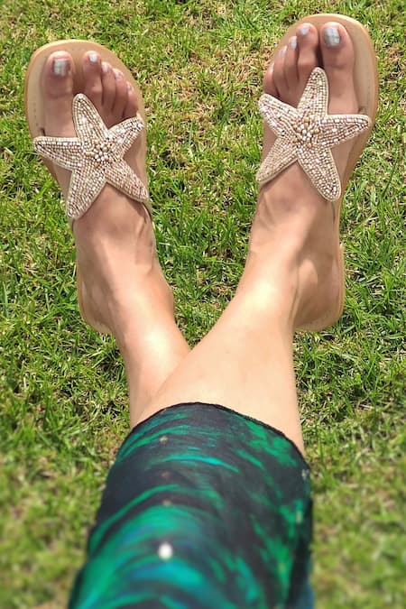 Sandalwali_Gold Embroidery Bead Starfish Sandals _Online_at_Aza_Fashions