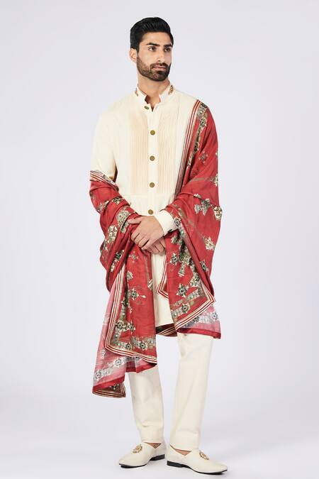 Cherry stole featuring jewel pattern prints with faux leather cut work on the edges
