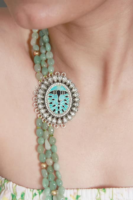 Green Multi Stranded Brooch Necklace