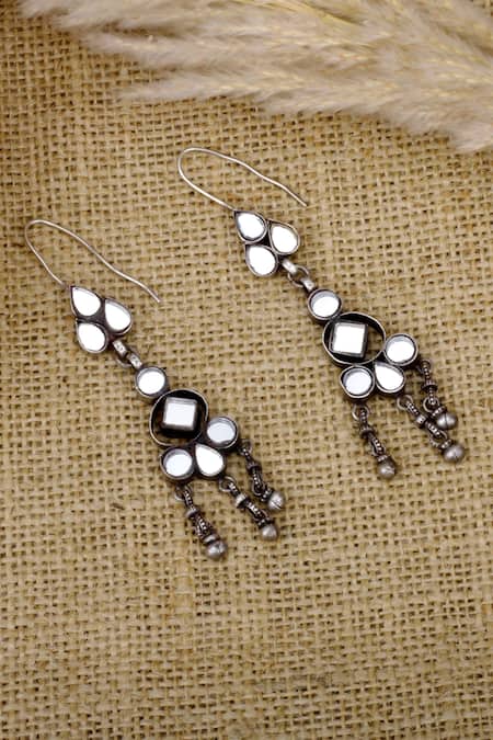 Silver Plated Mirrors, Tassels Shiza Embellished Earrings