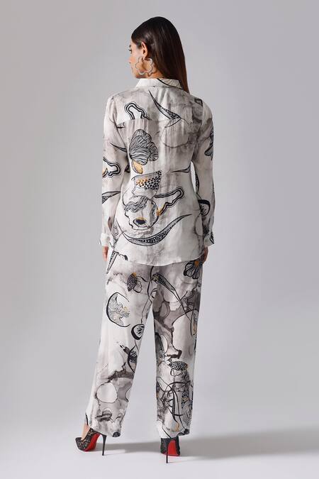 Buy_Klad_Black Satin Printed Floral Collared Neck Shirt_at_Aza_Fashions