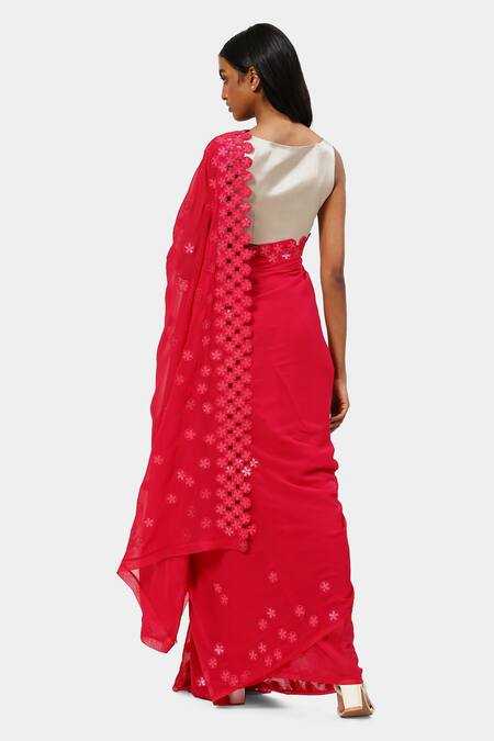 Fuchsia saree in viscose georgette featuring all-over floral sequins and applique embroidery