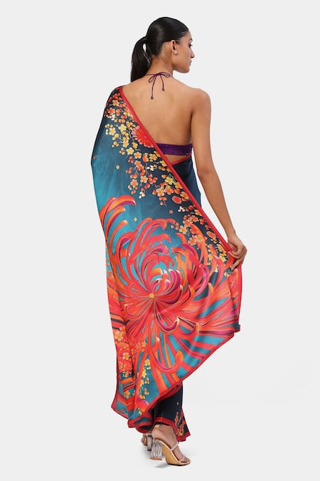 Blue Georgette, Satin Printed Breach Candy Saree