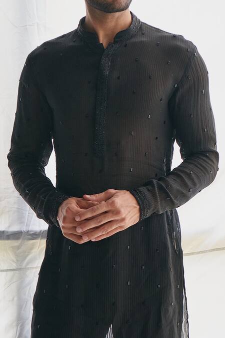 Black kurta featuring full sleeves and stand collar with cutdana embroidery. Paired with matching pant for a complete look.