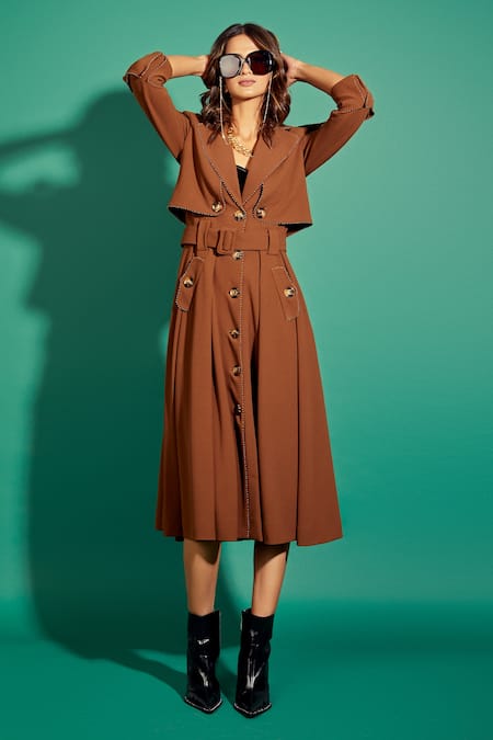 Buy_Asra_Brown Scuba Georgette Collared Neck Jacket_Online_at_Aza_Fashions