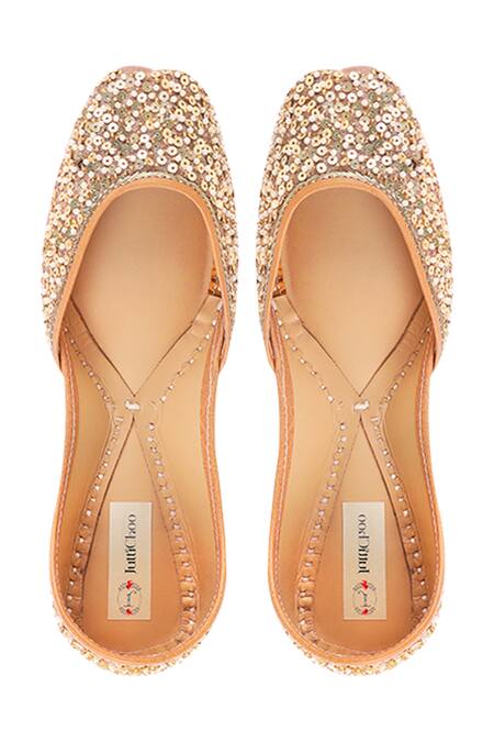 Beige juttis with sequin embellished detailing.