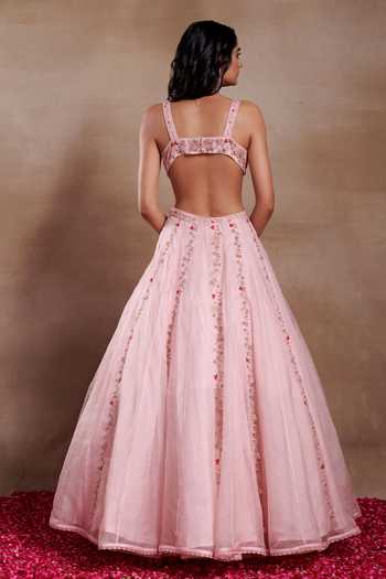 Pink Organza Embroidery, Sequins Scoop Neck Rosa Belle Gown