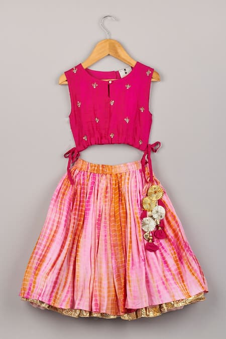 Pink Silk Tassels, Sequins, Embroidery Shibori Print Lehenga And Choli Set
