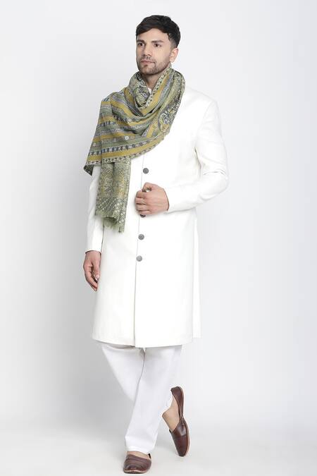 Buy_Shingora_Green Faizal Mughal Woven Muffler_Online_at_Aza_Fashions