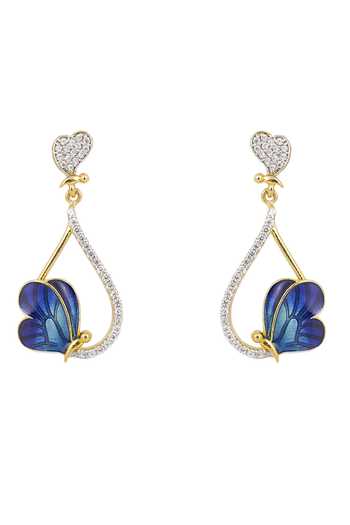 Blue butterfly drop earrings crafted from 925 Silver, featuring a gold plating and screw closure.