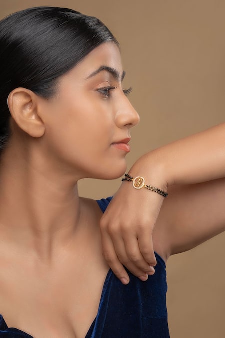 Black mangalsutra bracelet crafted from 925 silver with rhodium gold plating