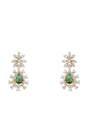 Green Gemstones, Faux Diamonds 925 Silver Bhanupriya Embellihsed Earrings