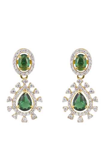 Green drop earrings crafted from 925 silver with gold plating.