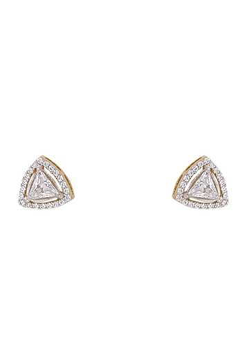 White Crystals, Stones 925 Silver Trikona Stud Earrings