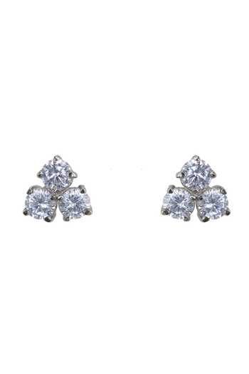 A pair of white stud earrings crafted from 925 silver, featuring a cluster of three round-cut stones.