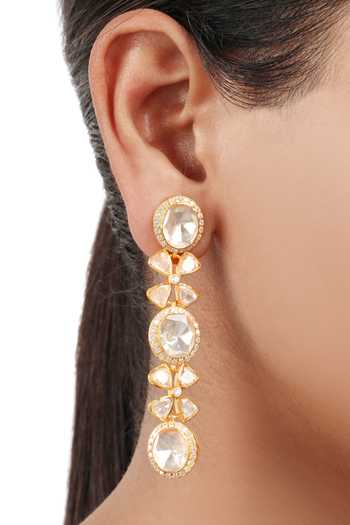 Yellow Metallic Thread Moissanite Polki Embellished Date Night Earrings