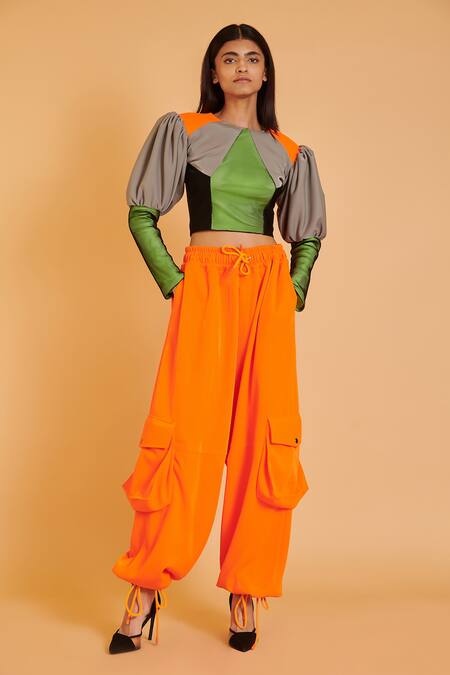 Orange oversized solid pant featuring an elasticated waistband and side pockets