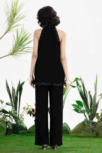 Black Cotton, Crepe, Voile Halter , Keyhole Take On Me Top And Pant Set
